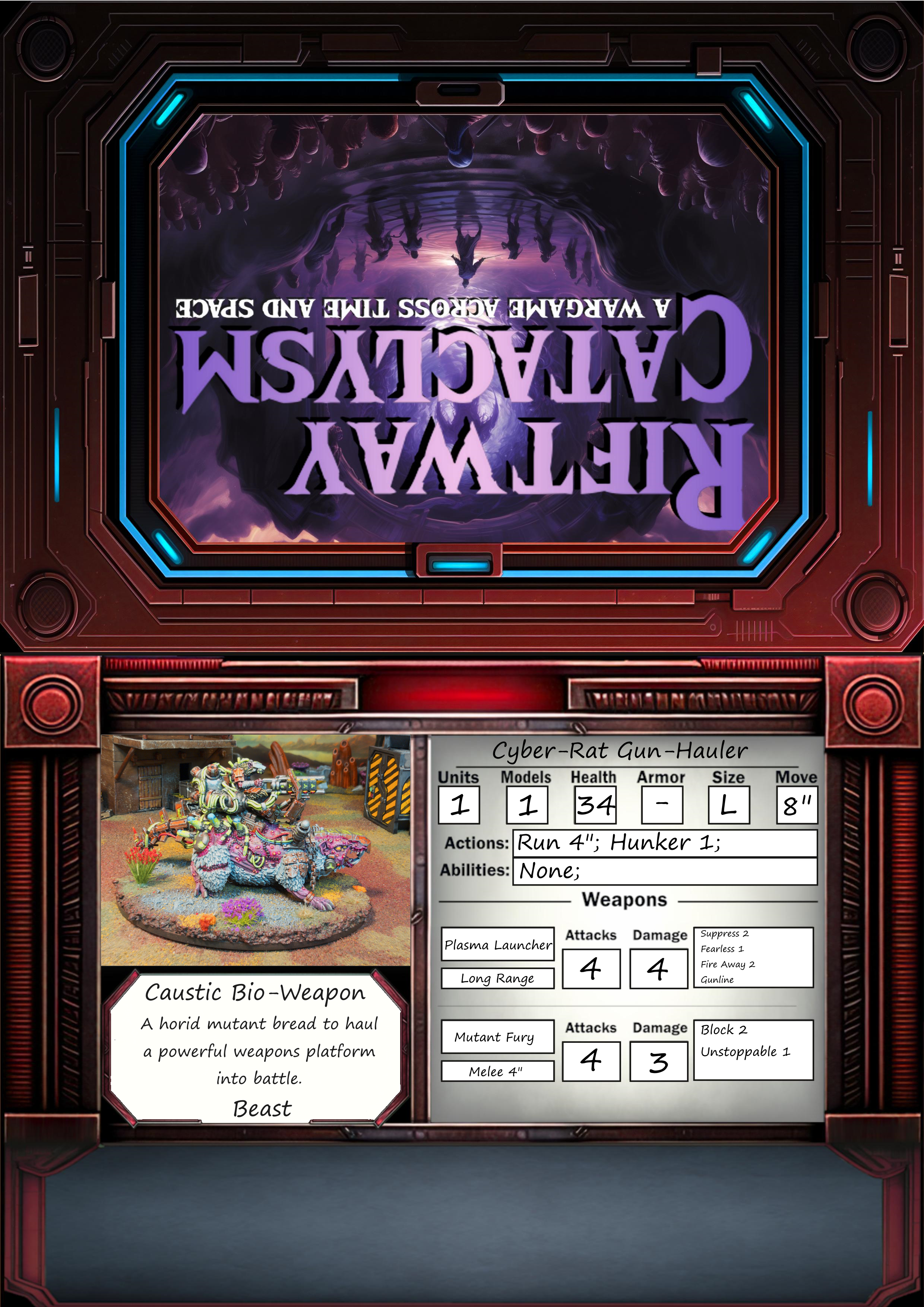 Troop rules in Riftway Cataclysm are broad archetypes that could be applied to a wide range of models. Instead of focusing on matching the troop card to the perfect model, put that energy into telling your own story.
